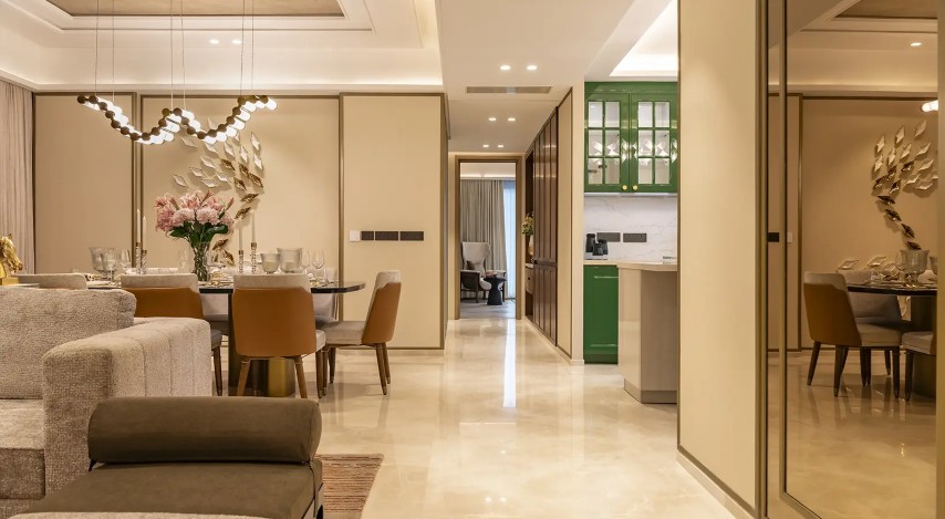 - Premium Interiors: Italian marble/natural stone flooring in living areas, engineered wooden flooring in bedrooms, and high-end fittings from brands like Villeroy & Boch or Kohler.